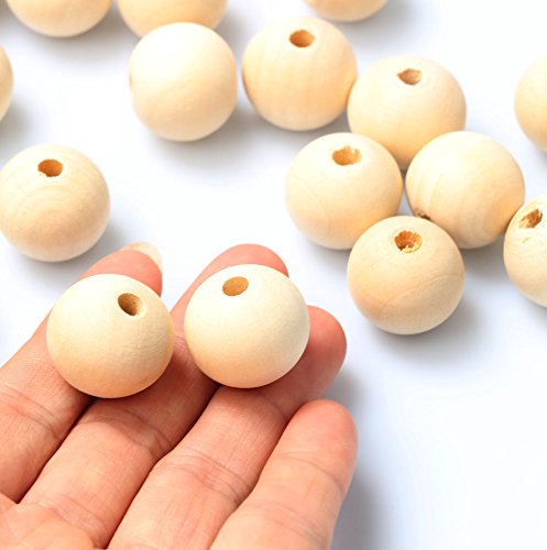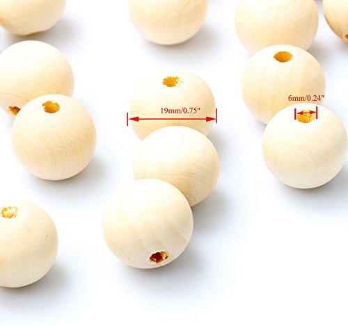 RERIVER 3/4"Unfinished Natural Wooden Round Beads Spacer Beading Supplies Jewelry Findings Charms(60pcs)
