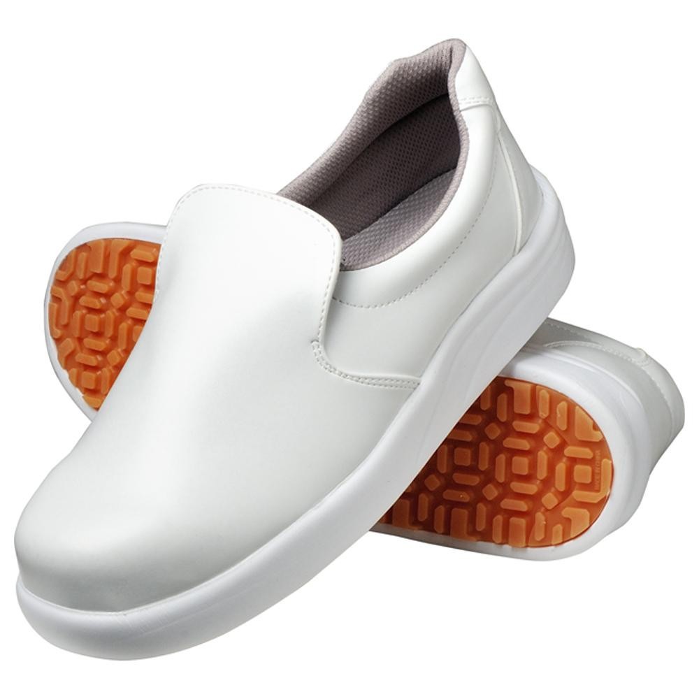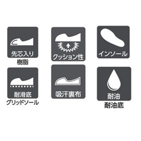すべりにくく油に強いスニーカータイプ。クッション性に優れているため疲れにくく、先芯入りで落下物からつま先部分を保護します。