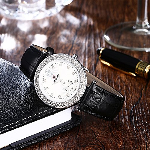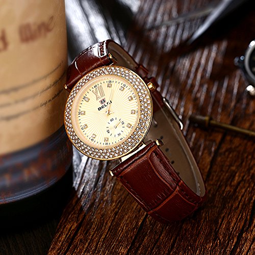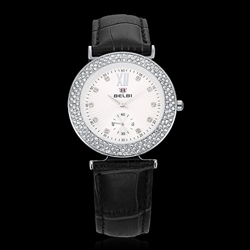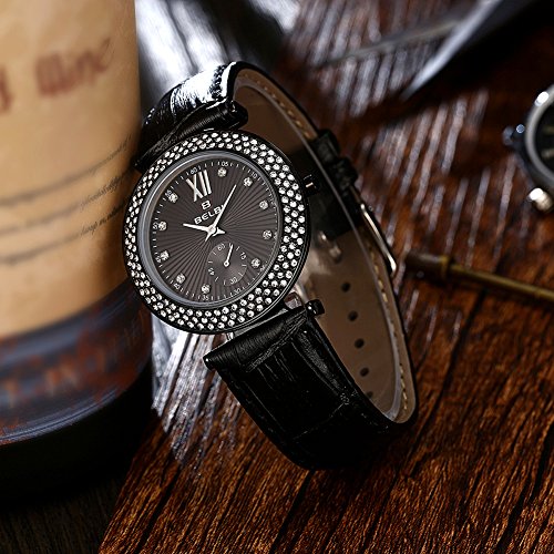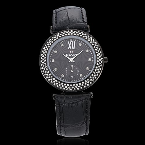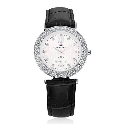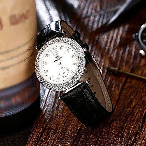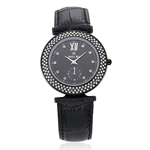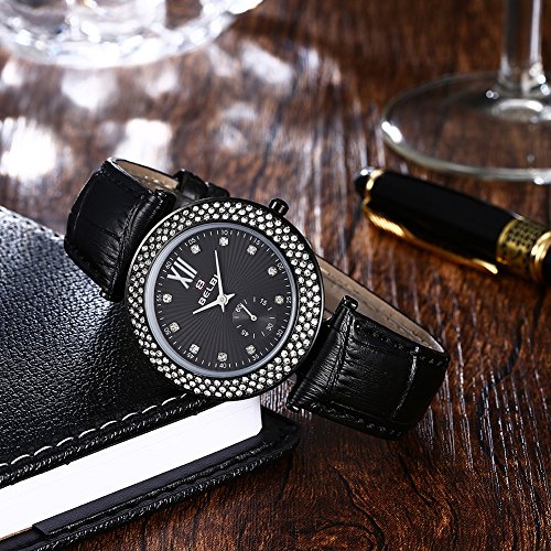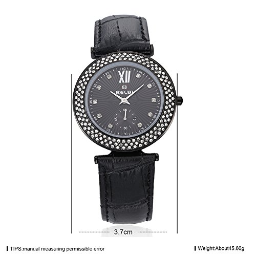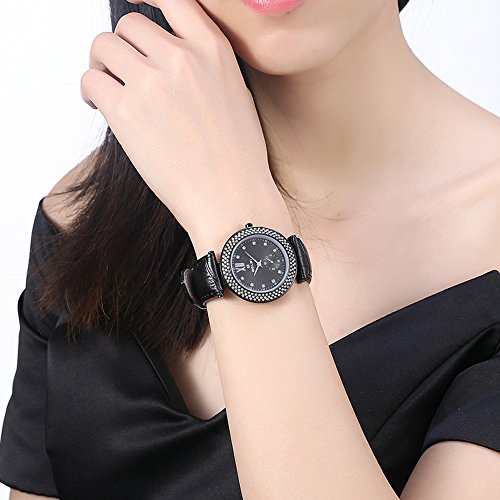 Rockyu 브랜드 인기 손목시계 시계 레이디스 캐주얼 블랙 가죽 밴드 30M 방수내 충격 내구 [병행수입품]