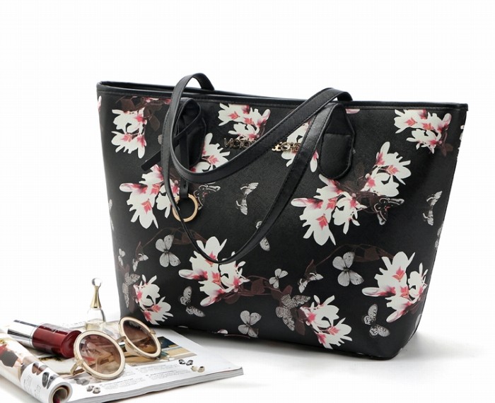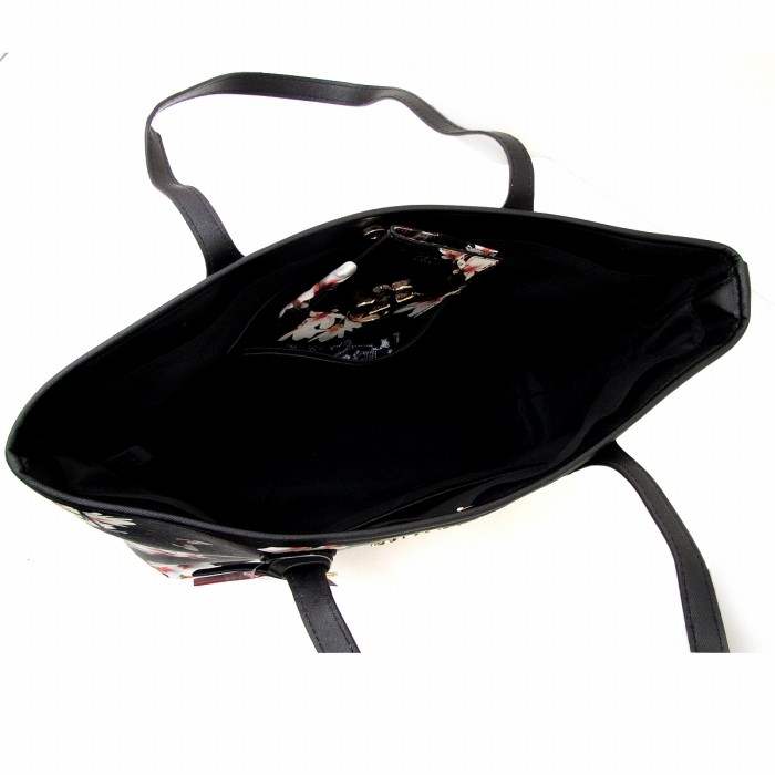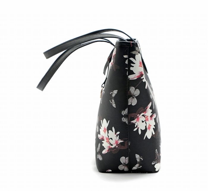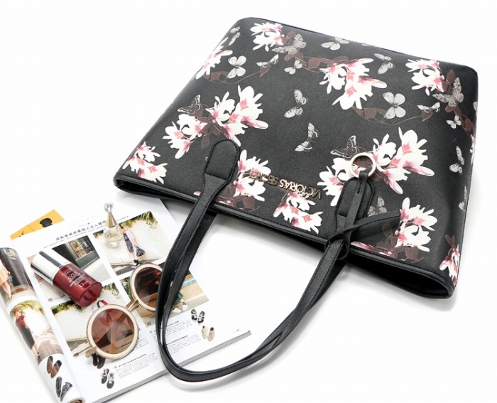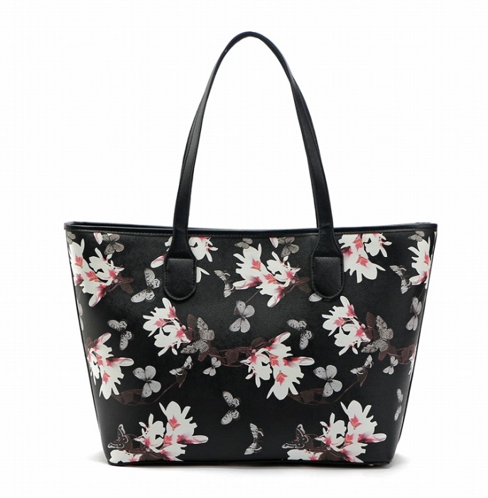サイズ(約)開口部巾:47cm×底部巾35cm:高:27cm×マチ:14cm×持ち手上がり:23cm ※多少の誤差はご容赦くださいレジャーにぴったりのトートバッグ。ブラックの生地にお花と蝶がプリントされた、上品なバッグです♪マグネットボタンでの開閉で、ファスナー付きポケットと、オープンポケット付き。水に強い素材なので、旅行にぴったりです!※生地の取り方が異なるため、ひとつひとつ「柄」が異なります。 写真の柄の位置と、お送りする商品の柄の位置が違う場合もございますが、商品製造上の特性です。「柄」をお選びいただくことはお受けできかねますのでご了承くださいませ。※VS商品の金属は大変柔らかく傷が付きやすい金属の為、店頭展示品で無くても製造過程や搬入によりできた傷などが稀に見られる場合がございます。VSでは不良品扱いにはなりませんので、予めご了承頂きご注文お願い致します。