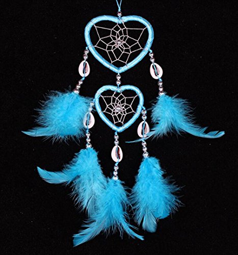 AWAYTR Dream Catcher Car or Wall Hanging Ornament Heart Shape (Double heart circle-Sky blue)