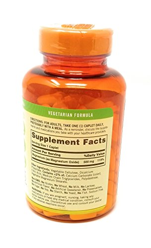 Sundown Naturals Magnesium 500 Mg Caplets Value Size, 180 Count, (Pack of 2)