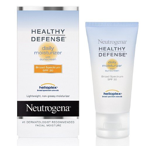 Dermatologist recommended. Moisturizer, Sunscreen Neutrogena Active Ingredients: Ensulizole 2.0%; Octonoxate 7.5%; Octocrylene 7.5%; Zinc Oxide 1.9% Smooth liberally on face, neck and other exposed areas every morning after cleansing. Reapply if excess perspiration or product wear occurs. Works well alone or under makeup. Inactive Ingredients: Water; Glycerin; Isohexadacane; Butyloctyl Salicylate; Cyclopentasiloxane; PEG-100 Stearate; Glyceryl Stearate; Cetearyl Alcohol; Triethoxycaprylylsilane; Triethanolamine; Behenyl Alcohol; Sodium Hyaluronate; Cyclohexasiloxane; Codium Tomentosum; BHT; Tocopherol; Calcium Pantothenate; Bisabolol; Dicetyl Phosphate; Ceteth-10 Phosphate; Propylene Glycol; Butylene Glycol; Trimethylolpropane Triethylhexanoate; Caprylic/Capric Triglyceride; Sodium Acrylates Copolymer; Xanthan Gum; Phenoxyethanol; Methylparaben; Ethylparaben; Propylparaben; Isobutylparaben; Butylparaben Uses: Neutrogena Healthy Defense SPF 30 Daily Moisturizer offers broad-spectrum daily protection against incidental sun exposure and over time helps prevent the signs of premature aging to improve the healthy look of your skin. PROTECTS. SPF 30 sunscreen provides broad spectrum daily protection against sun's damaging UV-burning and UV-aging rays. PREVENTS. Exclusive antioxidant blend with Pure Vitamin E helps protect skin from environmental damage caused by free radicals. MOISTURIZES. Lightweight, non-greasy formula absorbs quickly and keeps skin hydrated all day. NON-COMEDOGENIC. Won't clog pores, which can cause breakouts. Neutrogena Healthy Defense SPF 30 Daily Moisturizer is: non-irritating, hypo-allergenic, fragrance-free. For external use only. Avoid contact with eyes. If contact occurs, flush thoroughly with water. Discontinue use if irritation or rash appears. Keep out of reach of children. If swallowed, get medical help or contact a Poison Control Center immediately.Feature
