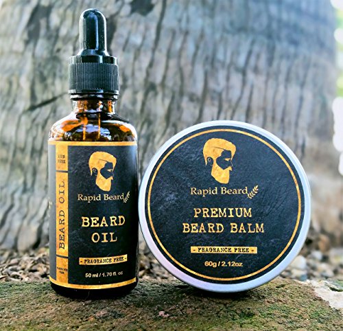 -. Feature : NATURAL PURE & ORGANIC INGREDIENTS - Argan oil, Jojoba oil and Vitamin E oil are main ingredients. 100% natural and organic, you'll enjoy a better beard growth without any unwanted scents or additives. / MAKE STYLING EASY - Grooming, shaping and taming your beard & mustache was never easier, thanks to the superior hold, softener properties and shaping power of Rapid Beard's heavy duty balm leave in wax ("beard butter"). / CONDITIONER, SOFTENER & MOISTURIZER - These beard oil (1.7 fl.oz / 50ml) and beard balm (2.12 oz / 60g) leave-in conditioner, both have the perfect formula for keeping your facial hair and skin hydrated, moisturized, silky soft, healthy and groomed during a long day. Softening and eliminates itching & dandruff (beard druff). / UNSCENTED BEARD OIL - Is it really unscented, as in there is no smell whatsoever? Yep! Our beard oil is 100% fragrance free! / PERFECT GIFT - This kit comes packed in a luxury premium gift box. Can easily make up a great gift for a bearded friend, Colleague, family member or husband that could use some beard care products to tame up his beard and moustache ! ------------------------ Beard oil for men, Beard balm for men, Beard wax for men, Beard conditioner for men, Beard oil and balm kit for men, beard butter, mustache wax, beard kit.