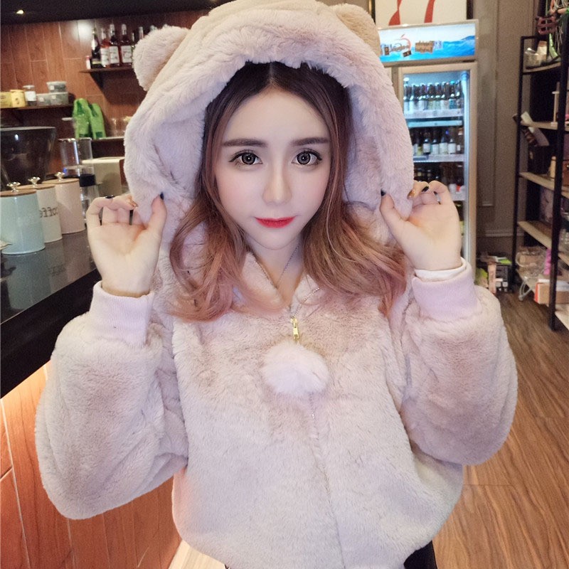 もこもこでクマ耳付きのかわいさ100%アウター♬ 暖かさも満点です♡