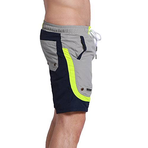 -. Feature : 100% Nylon/Mesh Lining / High quality ,Double Fabric, light-weight design, breathable and comfortable / Applicable to most occasions:running, gym, beach, swimming, or at home / the swim trunks provide three pockets,very comfortable and convenient for you to put the wallet,keys or cellphone in it while doing sports / Asian size is smaller than US size, Please Check Amazon's Size Chart and bought the size on the US size