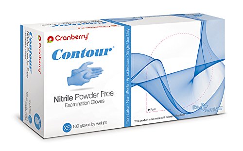 Cranberry USA CR3115 Contour Nitrile Powder Free Exam Gloves, X-Small, Blue (Pack of 100)