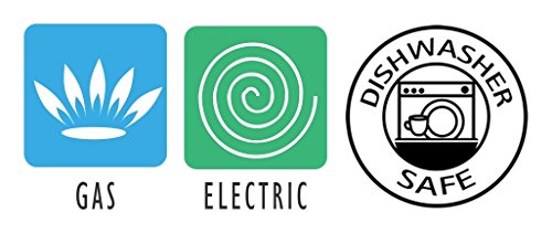 Easy to clean. Suitable on all cooktop except induction. Dishwasher safe