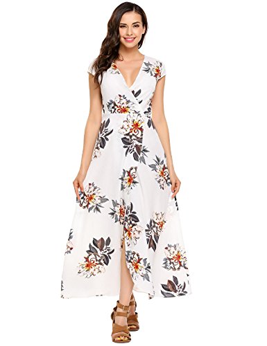-. Feature : Material: 95% polyester, 5% spandex / Sexy slit floral maxi summer dress suits for fashion ladies and young teen girls, makes her looks very nice. / Features: Short Sleeve, Wrap V Neck, Floral P.R.Int, Tie Side, Split, Floor Length, Sexy Style, Regular Fit / Do not blench, hand wash separately in cold water and dry clean / Please check the size table carefully before you order