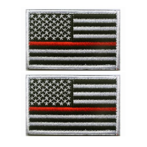 AKOAK 2 Pieces American US Flag Embroidered Patches with Velcro Backing Patriotic USA Military Tactics Patch Iron-On or Sew to Any Garment - Thin Red...