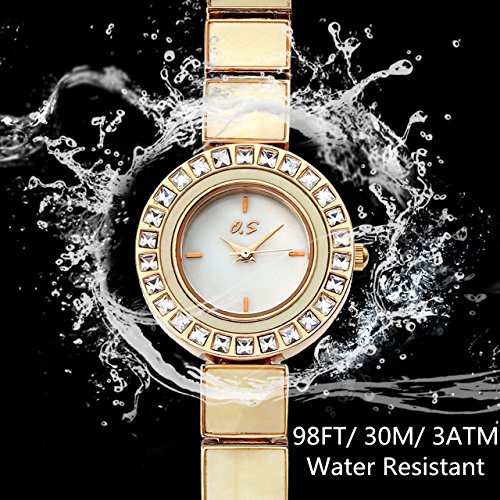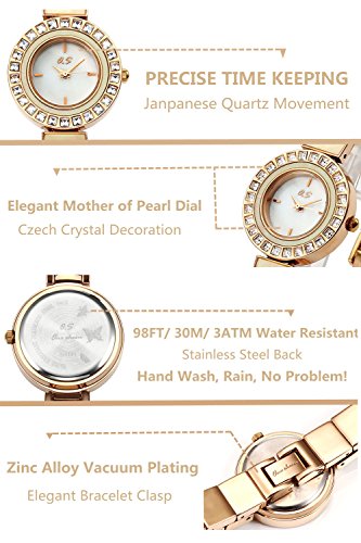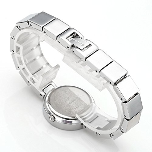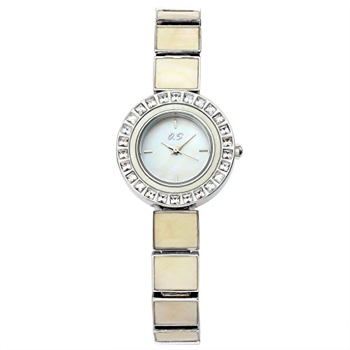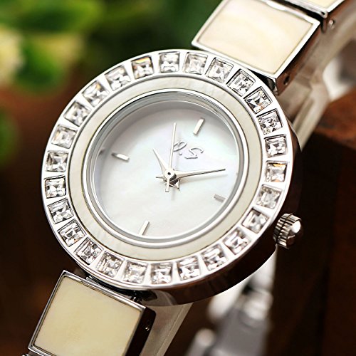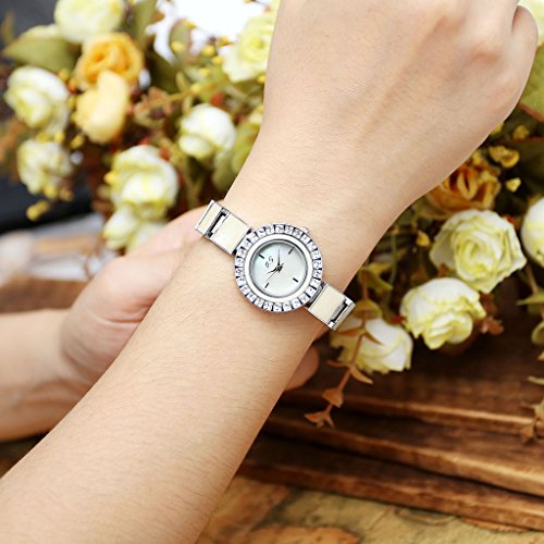 JSDDE Women Bracelet Dress Watch Czech Drill Alloy Case Seashell Dial Square Metal Band 3 ATM Resistant-Silver