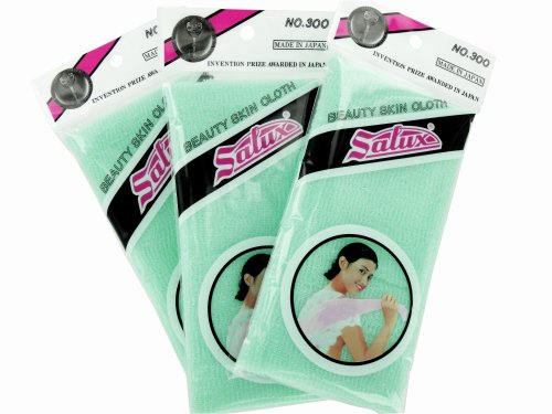 -. Feature : Winner of the Invention P.R.Ize in Japan, unique patented design / Softer than loofah, but still textured for exfoliating entire body. Creates a rich lather while stimulating skin and blood circulation, Great for cellulite massage. / Light nylon fabric air dries quickly and completely - machine washable, more sanitary than loofah. / Much longer than a normal washcloth - at 35 inches (90cm) - to reach neck and back with ease. / Buy one for each family member! SALUX towels are available in Yellow (7010), Blue (7011), Pink (7012), White (7013), Peach (7015), Aquamarine (7016) and Turquoise (7027). Softer, all-natural versions also available in 100% Cotton (7014) and 100% Silk (7020).