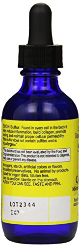 Found in every cell in the body, sulfur helps reduce inflammation, build collagen, promote healing, and maintain proper cellular permeability. Eidon sulfur does not contain sulfites and is hypoallergenic. Take the guesswork out of supplements: eidon uses a proprietary process that transforms pure mineral crystals into a fully hydrated, 100 percent bioavailable liquid ionic supplement. The eidon difference: large doses are used in solid supplements because most of the mineral is not absorbed. Eidon minerals are 100 percent bioavailable. It is not necessary to take large doses in order to be effective.Feature