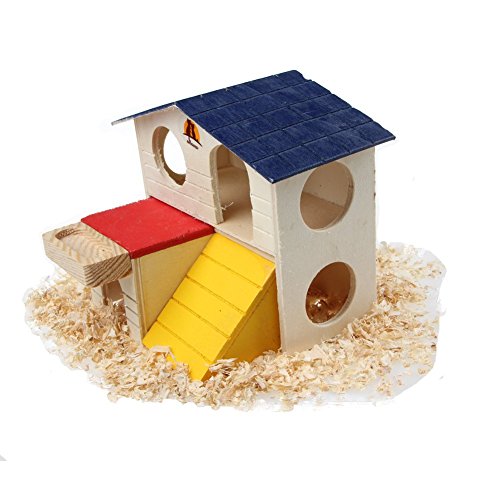 Pet Small Animal Hideout Hamster House Deluxe Two Layers Wooden Hut Play Toys Chews