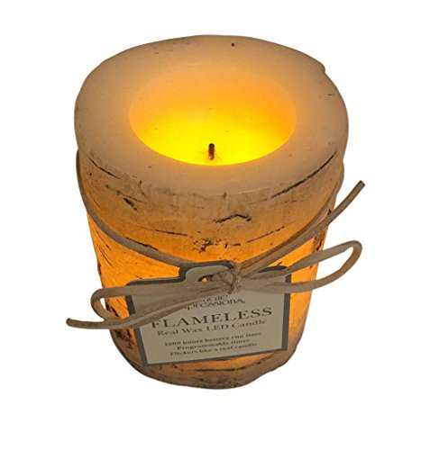 Candle Impressions Flameless LED Real Wax 4" Birch Bark Pillar