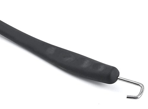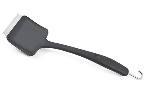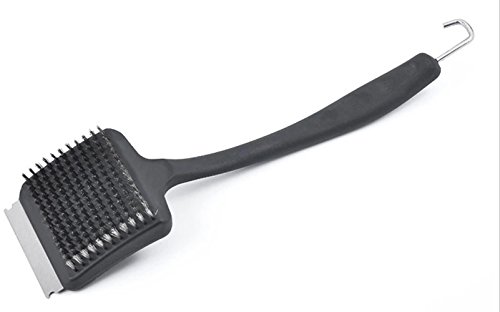 14 inch Long handle keeps your hand safe from hot grates, with finger molds and thumb mold for complete comfort and control, Metal scraper to remove tough, grilled-on food easily leaving your grill spotless