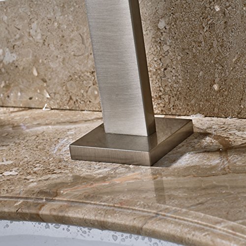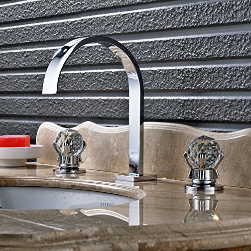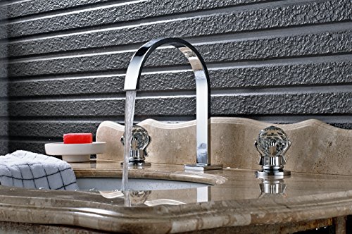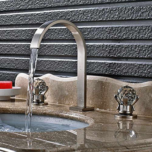 -. Brand : Rozin -. Feature : Deck Mounted 3 Holes,Fit for 8-inch Centre(the left to the right) Sink at least / Cold and hot water mixing,Controlled with two knobs / omplete with mounting fittings,with 2 connections hoses / Rozin provides any replacement in future use,so contact unhesitatingly once you have any problem -. ProductGroup : Home Improvement -. ProductTypeName : PLUMBING_FIXTURE -. Title : Rozin Widespread Deck Mounted Basin Faucet Dual Crystal Handles Sink Mixer Tap Brushed Nickel