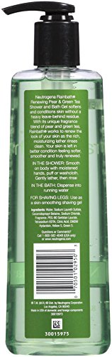 DetailsNeutrogena Rainbath Renewing Pear & Green Tea Shower and Bath Gel softens and conditions skin without a heavy leave-behind residue. With its unique fragrance blend of pear and green tea, Rainbath works to renew the look of your skin as the rich, moisturizing lather rinses clean. Your skin is left in better condition feeling softer, smoother and truly renewed.Made in USADirectionsIn the shower: Smooth on body with moistened hands, puff or washcloth. Gently lather, then rinse.In the bath: Dispense into running waterFor shaving legs: Use as a skin-smoothing shaving gelFeature