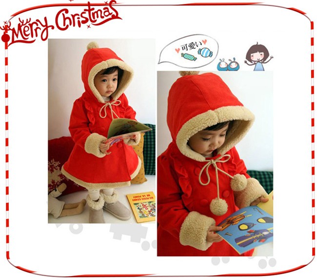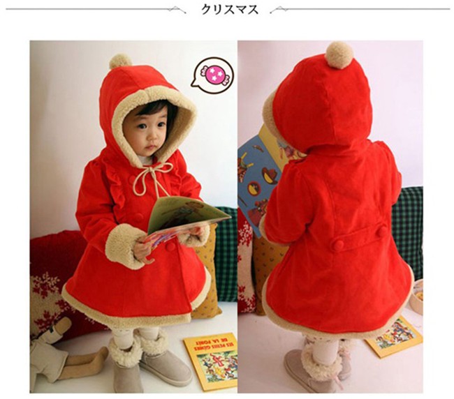 クリスマス 衣装 キッズ コート ロング フード付き ポンポン リボン フリル ダブルボタン aライン 子供服 女の子 アウター 防寒 かわいい 赤 子ども 服 xmas Christmas