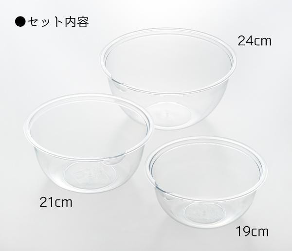 | セット内容 | クリアボウル3点(19・21・24cm) |