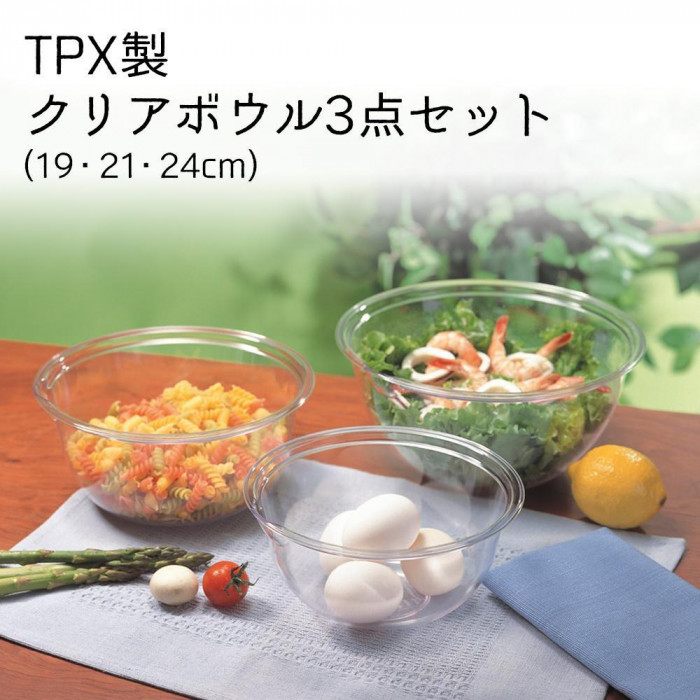 | 耐熱、耐冷性の高いTPX製のクリアボウル3点セット♪ |