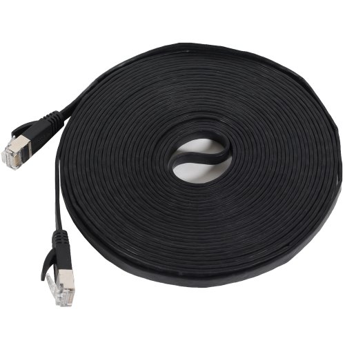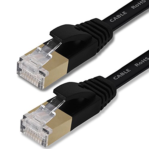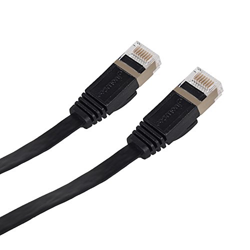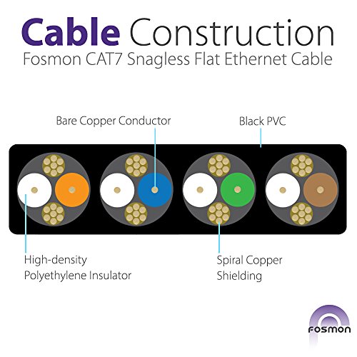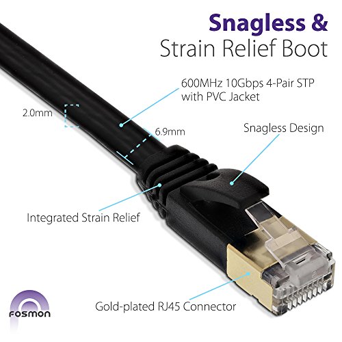 CAT7 Flat Ethernet Cable, Fosmon (Black - 25 Feet) CAT7 Snagless RJ45 Ethernet Network Patch Cable [FLAT Tangle Free] - Ultra Speed 10 Gigabit 600Mhz Patch - Modem / Router / LAN / Printer / MAC / Laptop