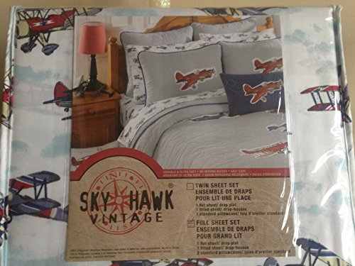 Sky Hawk Skyhawk 4 Piece Full Sheet Set Vintage Airplanes Bi-planes