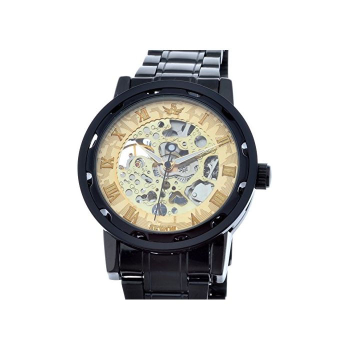 E-seven 손목시계 태엽 기계식 스켈리턴 메탈 밴드 dbfsme (블랙)