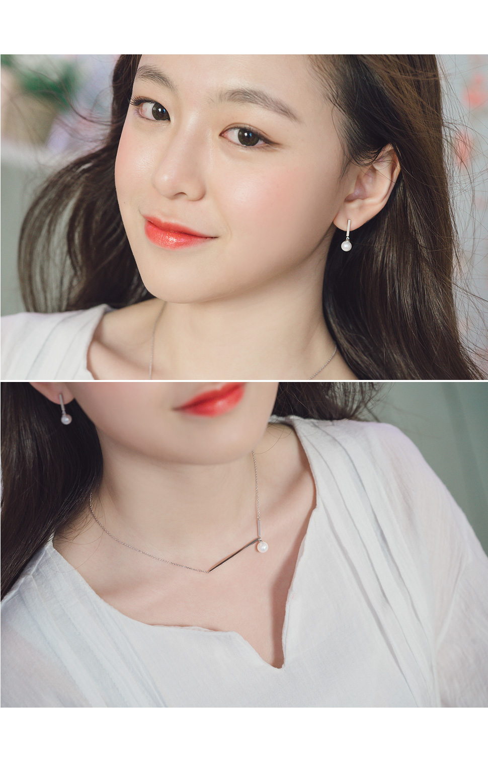고급스러운 핵진주 소재로 디자인 된 목걸이, 귀걸이 Set 제품