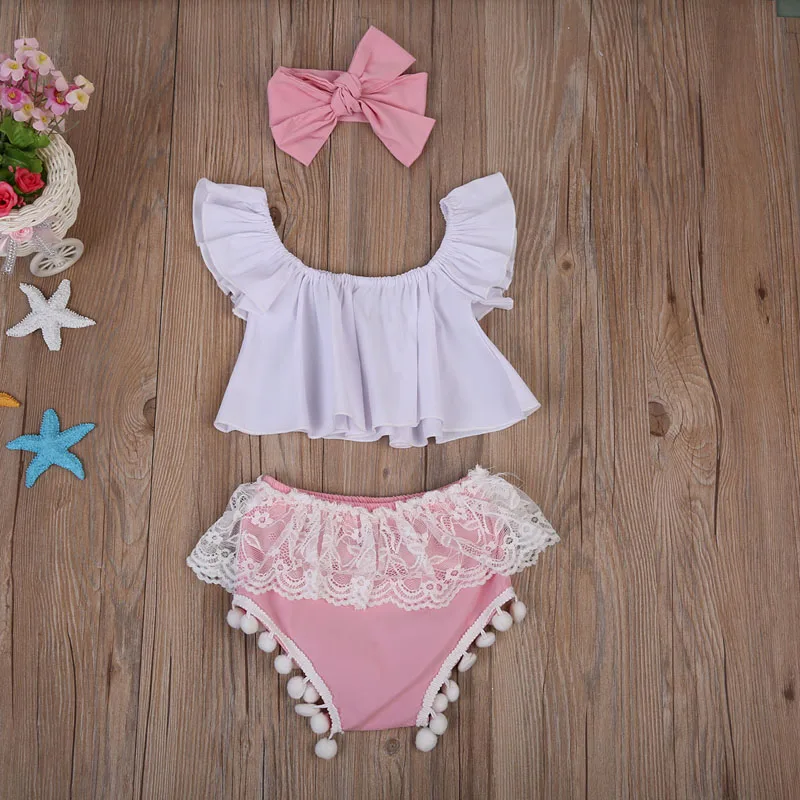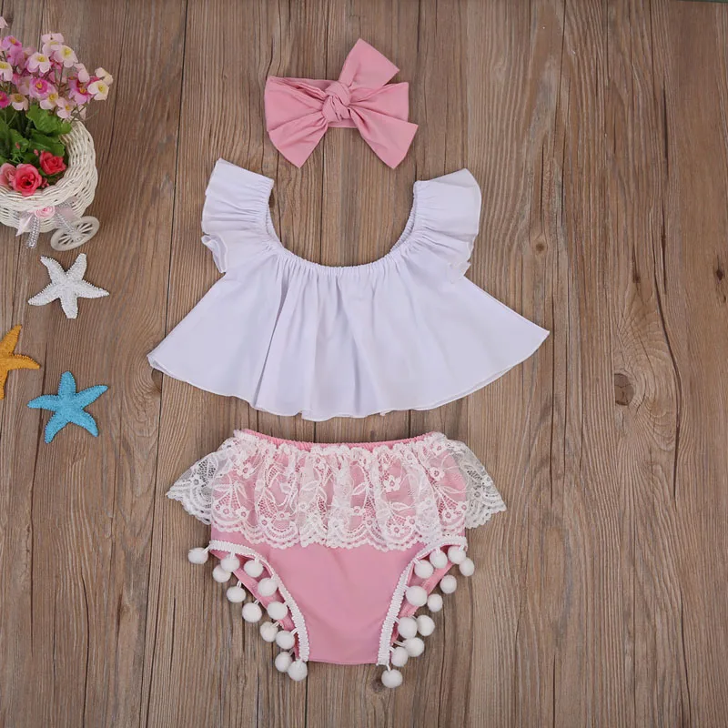 新加入新生児女の子トップス+レースパンツ+カチューシャ3ピース扮!!