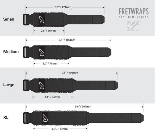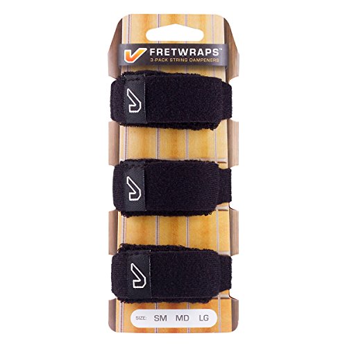 Studio : Gruv Gear Publisher : Gruv Gear Product Description Now there's no more need to borrow your girlfriend's scrunchie or hair tie. Fretwraps are adjustable straps that allow you to you fine-tune the pressure and dampening of the strings effectively cutting the overtones and sympathetic resonance during recording, live performance, two-hand tapping, or any other situation where an extra muting hand is needed for taking out unwanted string noise or ringing. And when you need to change strings, it comes off in a cinch. This smart accessory is for any studio, session player or tapping afficianado. Comes in a 3 pack so you always have one at the ready.Choose from Small, Medium, or Large in the drop-down menu. 0