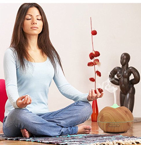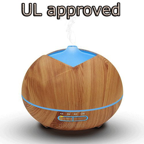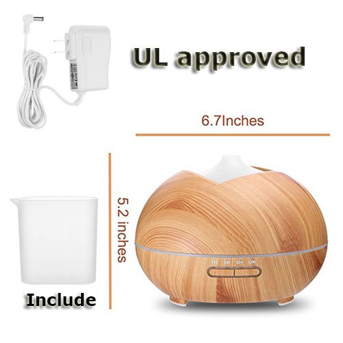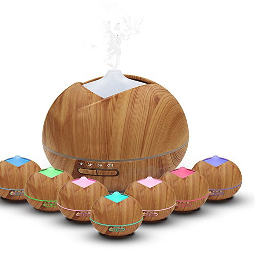Essential Oil Diffuser Humidifiers 450ml Wood Grain Ultrasonic Cool Mist Whisper-Quiet With Color LED Lights Changing & 4 Timer Settings (Light Brown)