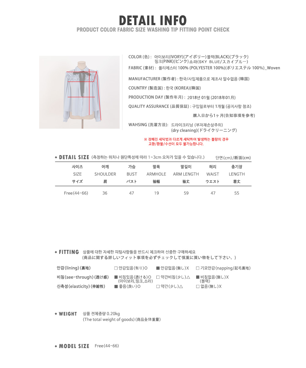 벨로린리본블랑 '넥라인의 스트랩 디테일이 있어 다양한 연출이 가능한 아이템' 프릴 디테일이 매력적인 로맨틱한 무드의 리본블라우스를 소개해드려요~ size tip모델착용 사이즈는 Free(44-66)입니다 정확한 사이즈는 하단의 size표를 꼭! 참고해주세요 야외(실내)촬영 특성상 실제 상품과 컬러차이가 있을 수 있습니다. 정확한 컬러는 하단의 디테일컷을 참고해주세요. |