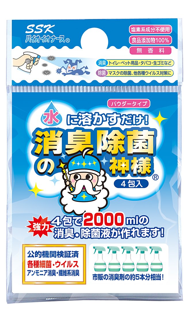 Chlorine-free ingredient not used · Food additives 100% · No fragrance 【Deodorant】 Toilet · Pet supplies · Tobacco · Garbage etc. 【Disinfection】 Disinfection of masks, Public institution verified for various virus countermeasures