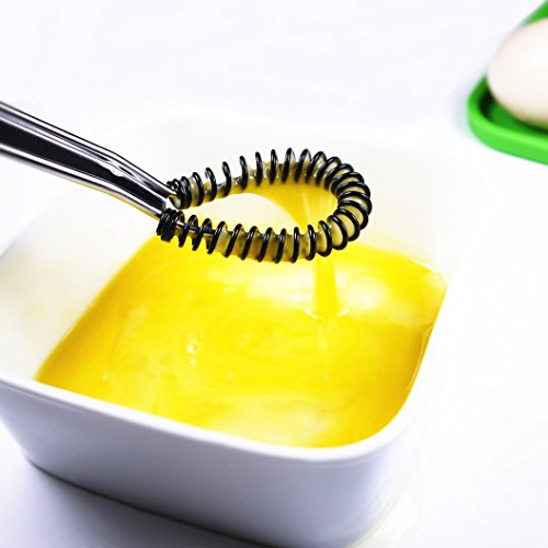 FOOD GRADE MATERIAL: This mini spring egg beater crafted by stainless steel with silicone coil, durable and eco-friendly
