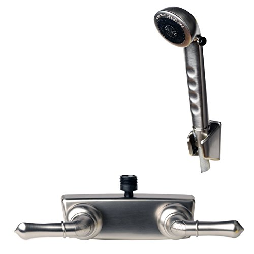 Builders Shoppe 3220BN/4120BN RV/Motorhome Replacement Non-Metallic Two Handle Shower Faucet Valve Diverter with Matching Hand Held Shower Set Brushed Nickel Finish