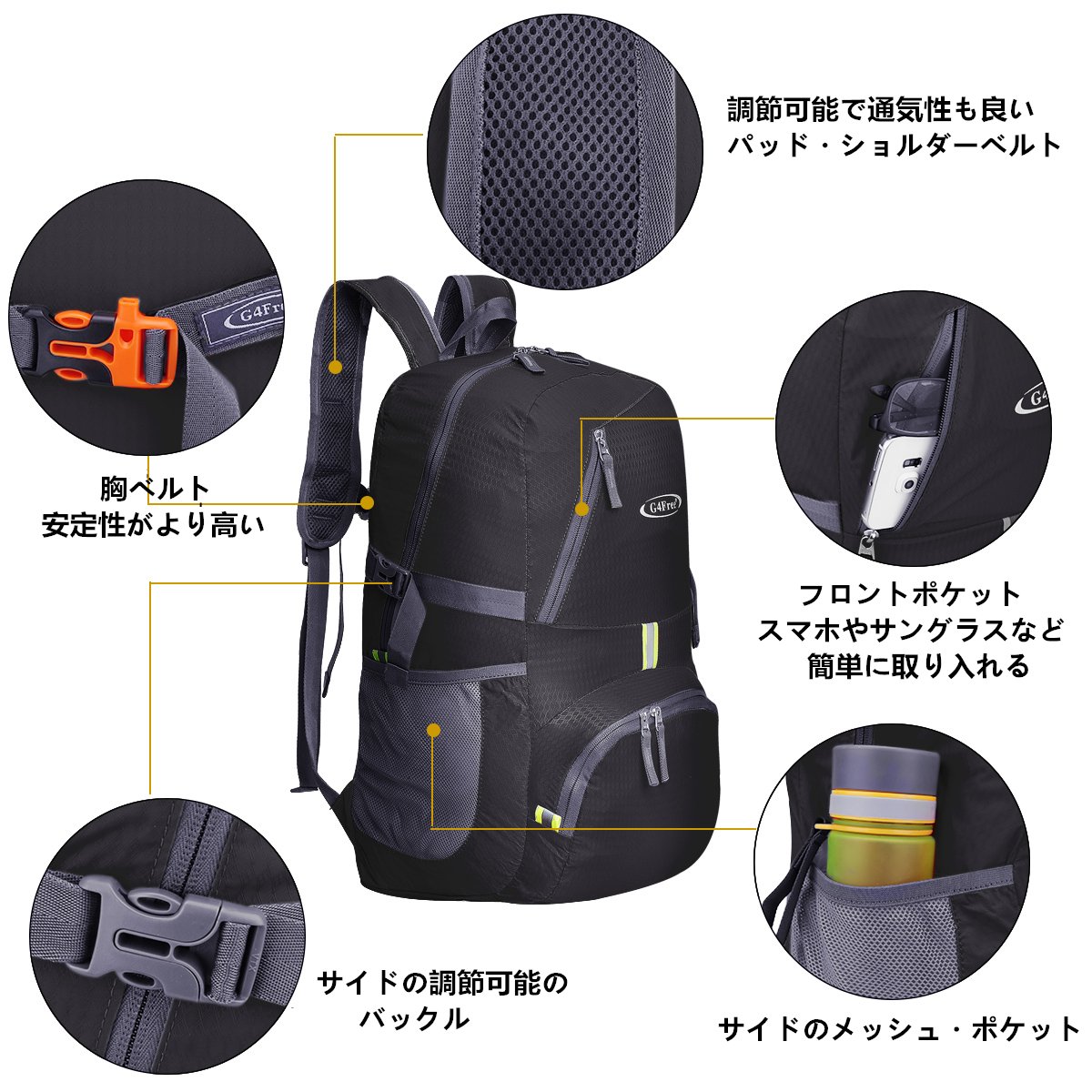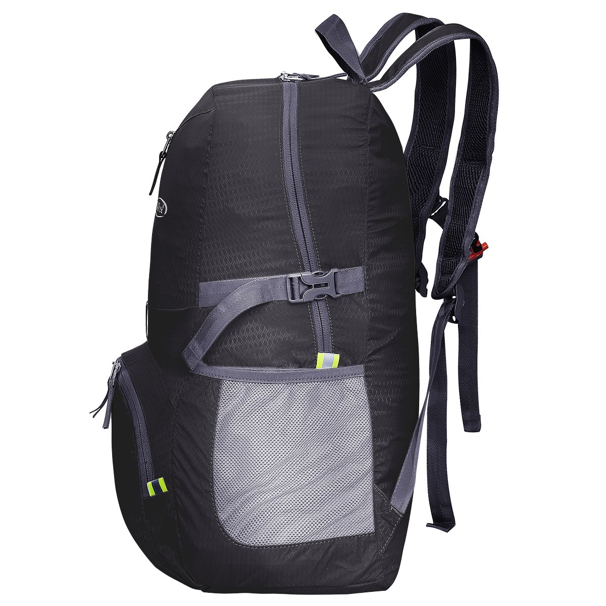 There are strong and high quality buckles on both sides of the bag and the chest belt, you can also adjust the length of the belt.