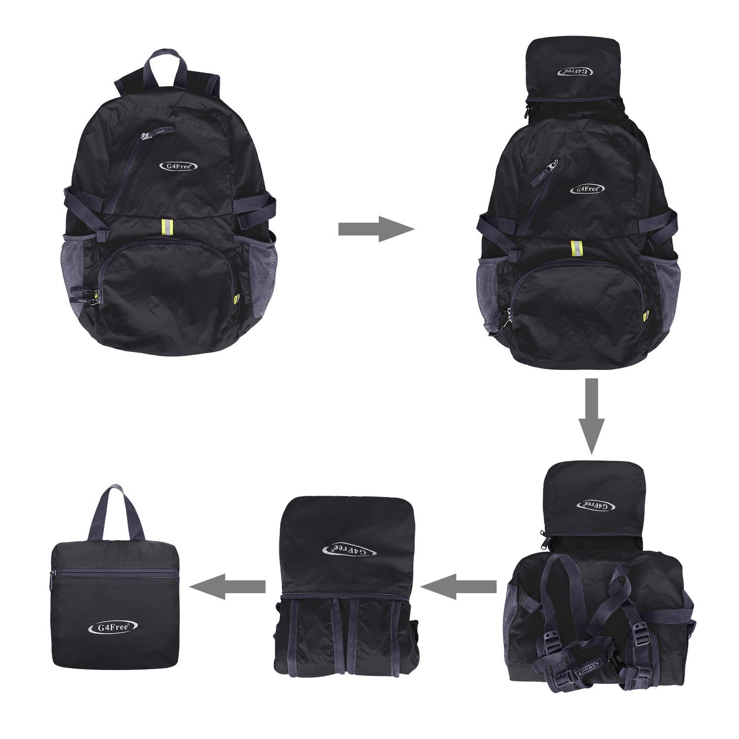 The backpack folds, it can become a compact small bag.