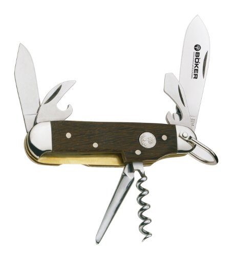 Studio : Boker USA - Sports Publisher : Boker USA - Sports Binding : Sports Product Description The flagship of the Boker Solingen production facility is now offering the famous scout/camp knife. Features two blades, can opener, cap lifter, leather punch and reamer, cork screw and flathead screwdriver. Blade length: 2 1/2-Inch and 1 3/4-Inch. Closed length: 3 1/2-Inch. Weight: 3.3 oz. 0
