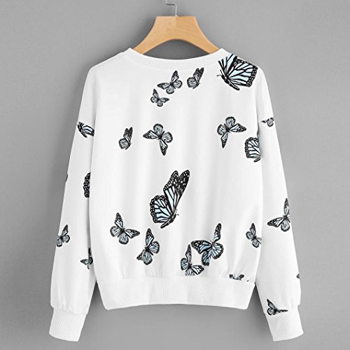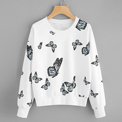 ?Asian Size Chart(Unit:cm/inch) ?Size:S _ Bust:92cm/35.4" _ Sleeve:47cm/18.5" _ Length:55cm/21.7" ?Size:M _ Bust:98cm/37.8" _ Sleeve:48cm/18.9" _ Length:56cm/22.0" ?Size:L _ Bust:104cm/40.2" _ Sleeve:49cm/19.3" _ Length:57cm/22.4" ?Size:XL _ Bust:110cm/42.5" _ Sleeve:50cm/19.7" _ Length:58cm/22.8" ?Size:XXL _ Bust:116cm/44.9" _ Sleeve:51cm/20.1" _ Length:59cm/23.2" ?Product information: ?Season: Autumn Winner ?Gender: Women? ?Occasion:?Casual ?Material:?Cotton Spandex ?Decoration:?None ?Clothing Length: Regular ?Pattern Type:?Butterfly ?Style: Fashion, Causal ?Weight: 205~245g(S-XXL) ?What you get: 1*Women Shirt 0