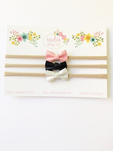 Product Description This darling set of 3 Micro Mini Bows make the perfect set for newborns to little girls. Simple and modern hand-tied bows made out of a high-quality GENUINE leather. Each bow is handmade with love by Indie Bow Co. Our sets are perfect for baby showers, back to school gifts, birthdays, and stocking stuffers! 0