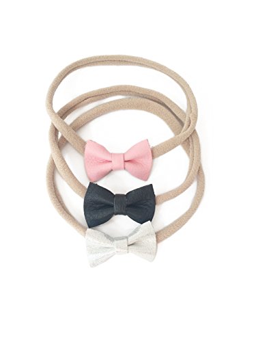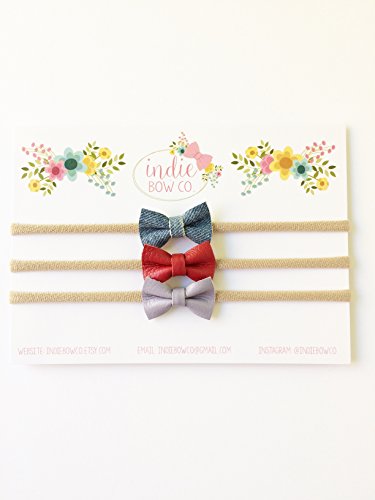 Indie Bow Co Handmade Genuine Leather Micro Mini Bow Headbands Set of 3