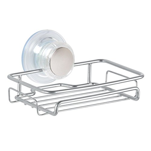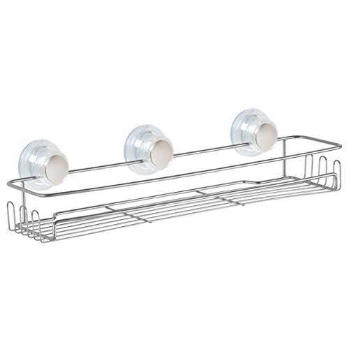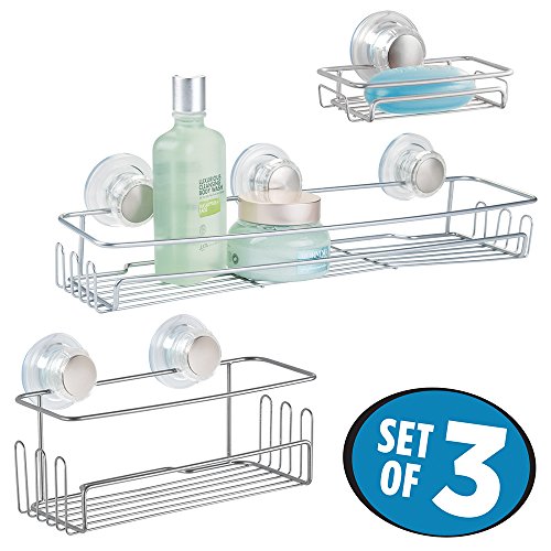 -. Title : mDesign Bathroom Suction Bar Soap Dish, Shower Caddy Basket, Extra-Large Basket - Set of 3, Silver