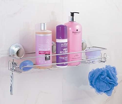 -. Feature : Set of 3 shower storage essentials includes: Suction basket, bar soap dish, and extra-large basket / Suction cups slide to avoid grout lines and create secure hold; Store shampoo, conditioner, soap, shaving cream, loofahs and more / Turn-N-Lock suction technology allows for the maximum hold on your shower walls; Push suction cups firmly against shower surface and turn knobs clockwise to tighten / Made of steel with rustproof silver finish / Soap dish: 5.7" x 4.38" x 3.11"; Basket: 10.02" x 4.79" x 5.61"; Extra-large basket: 18" x 5.08" x 4.15"