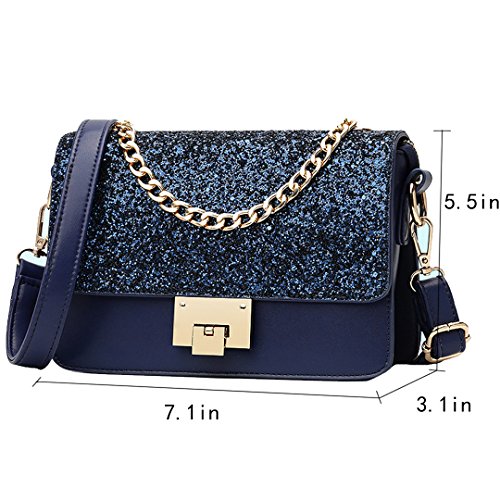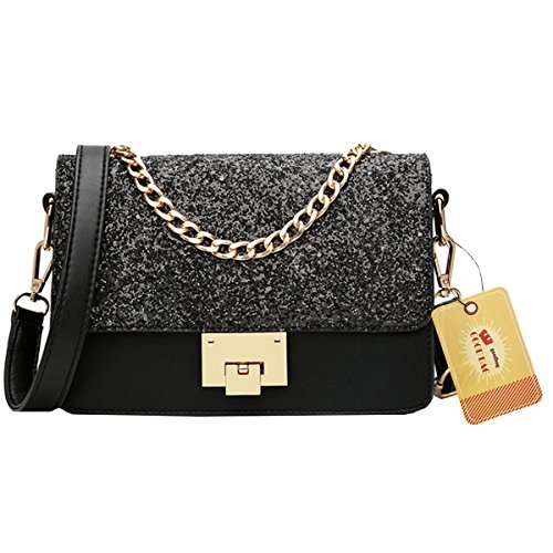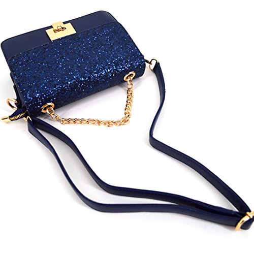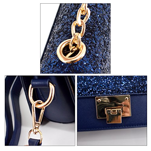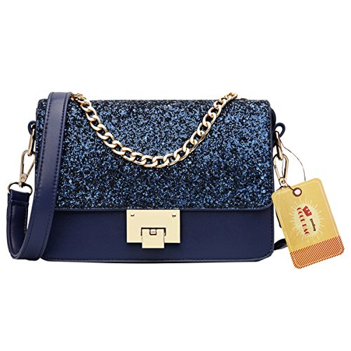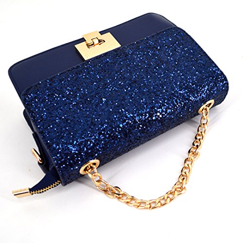 Sparkly sequin covered bag lid, decorated with the gold tone buckle, reflects shining sun lights when carrying on shoulder, truly stylish and chic; class black, elegant blue, sweet pink, three colors available