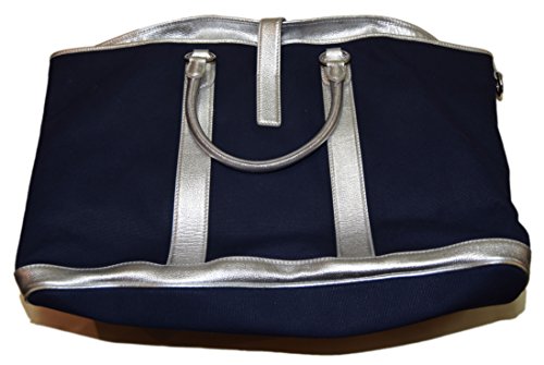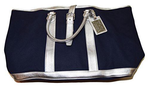 Polo Ralph Lauren Collection Womens Canvas Leather Duffle Tote Bag Navy Silver