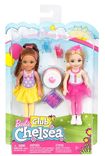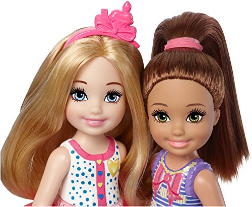 It’s an instant birthday party with two Chelsea dolls in one pack! Themed accessories help play out so many friendship stories. The Chelsea birthday party set celebrates a special day with a birthday cake, birthday gift, two drinks and a tiara for the birthday girl. Some of the pieces fit on the dolls’ hands for added realism. The party looks feature bright colors and fun patterns. Removable skirts and shoes can be taken on and off for mix-and-match fun. Plus, added diversity and more variety in looks and hairstyles provide infinitely more ways to spark imaginations and play out new stories. Collect all of the Chelsea dolls and accessories for even more exploration and fun possibilities (each sold separately, subject to availability). Includes two dolls wearing skirts and shoes, plus birthday party accessories. Colors and decorations may vary.Feature