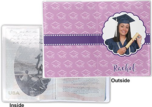 This cover is made of a sturdy clear vinyl with a personalized vinyl insert inside. There is a large and a small pocket on either side to hold the covers of your passport easily and firmly. The passport holder is approximately 5.25" x 7.5", the perfect size to snugly fit your passport. This slim cover is the perfect way to protect your passport without being one more bulky item you have to carry.