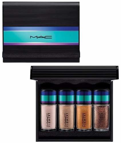 -. Feature : Glitter in Bronze (0.07 oz.) / Pigment in Blonde's Gold (0.08 oz.) / Pigment in Rich Out All Night (0.08 oz.) / Pigment in Naked (0.08 oz.) / By M·A·C.
