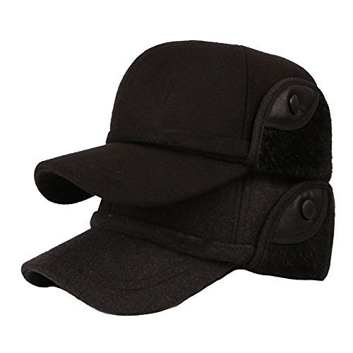 Feature : Material: Wool Fleece Cotton / One size fist most. / Winter hat with snap-up ear flaps / Keep your head and cheeks warm / Great gifts for mens.